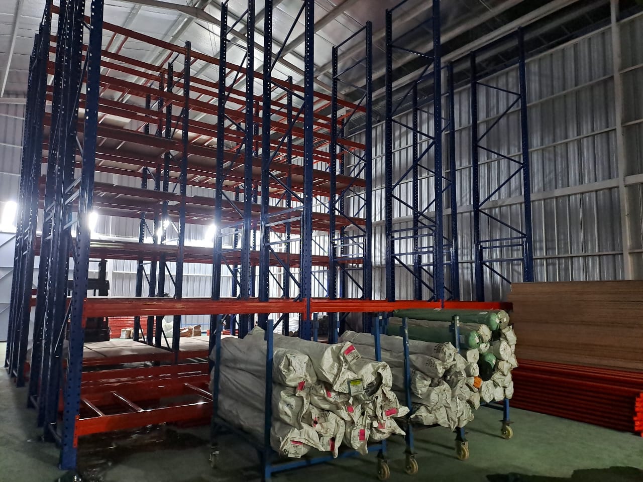 C. Drive-In Racking: barang yang tidak boleh ditumpuk biasanya disimpan dengan sistem rak ini. Meskipun begitu sistem ini tetap mampu mengoptimalkan luas gudang dengan mengurangi luas lorong, sehingga tetap bisa menyimpan dalam skala besar. Sistem ini juga diterapkan untuk barang yang jadwal masuk dan keluarnya tidak ketat.